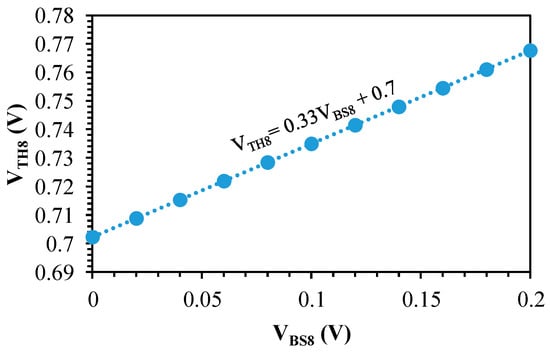 Simulation of the threshold voltage of M8 with respect to VBS8.