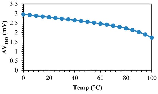 Equation (12) reveals that the body voltage scaled by the C3 coefficient is added to the threshold voltage. Figure 6 illustrates the variation in VTH8 versus VBS8. The slope of the variation is approximately near the predicted value of C3. Since the body of M8 is biased by a 2T n-type circuit in the proposed reference, a concave-in-temperature contribution is added to its threshold voltage. Figure 7 illustrates the difference in the threshold voltage of M8 between the zero-body-bias state and the state biased with the output voltage of the 2T n-type reference.