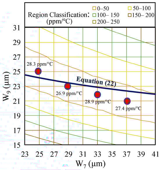 TC Monte Carlo analysis with 100 runs for two parameters of W7 and W9 and temperature compensation prediction of (22).