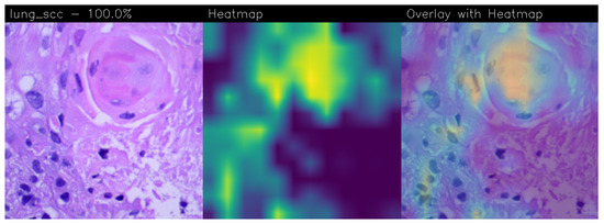 Starting from these considerations, in this paper, we propose a method aimed to automatically detect the presence of LC automatically from histological tissue images. We consider several deep learning networks aimed at classifying a tissue image as benign or cancerous. Moreover, with the aim to provide a kind of explainability behind the model prediction, we consider a way to automatically highlight the area of the tissue image that is symptomatic of the cancer presence from the network point of view. For this purpose, we resort to Gradient-weighted Class Activation Mapping (i.e., Grad-CAM), a technique used in computer vision to visualise the regions of an input image that contribute the most to the predictions made by a CNN [17,18]. In a nutshell, it helps in understanding which parts of the input image are crucial for the network’s decision, providing insights into the model’s decision-making process.