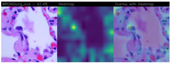 In the case of misclassification as shown in Figure 13, the pathologist can detect it by reading the term ’WRONG’ present in the image’s top left corner. This prompts a more careful analysis of those samples as is the case for heatmaps with a low classification percentage.