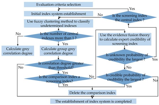 - The present paper proposes a method for establishing an evaluation index system of earthquake rescue robots. Firstly, experts construct the initial subjective evaluation index system and define the determined, undetermined, and central indexes. Subsequently, the fuzzy clustering method is employed to classify the undetermined indexes. Then, the group grey correlation degree method is utilized to determine which indexes should be screened, while employing evidence theory to fuse expert credibility regarding these screened indexes. Finally, closed-loop adjustments are made to eliminate redundancy in the screened indexes based on the results of credibility fusion.
