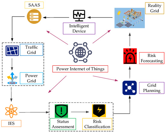 Distribution networks directly affect power users and are responsible for the important task of power distribution, which plays a key role in the economics, security, and stability of power grids and facilitates the integration of distributed equipment into the grid. The development of digital technologies likewise poses significant challenges to the security and reliability of smart grid networks [1,2,3,4]. With integrated energy systems, traditional power data collection platforms have fewer monitorable points, require a single type of monitoring data, and lack multivariate data-processing functions. Existing distribution network risk-planning techniques are becoming increasingly difficult to adapt and apply in relation to the special requirements of smart and transparent distribution networks. Applying the Power Internet of Things requires multiple monitoring nodes [5]; it is characterized by multiple connected nodes and multiple data types. By use of many monitoring nodes, the Power Internet of Things can develop the same data in multiple dimensions, thus improving the accuracy and real-time performance of distribution network modeling [6]. In order to improve the distribution network’s security system, in combination with Power Internet of Things-related technology, when multiple source loads must access the distribution network, it is necessary to carry out risk-related research in order to develop an active distribution network that comprises an integrated energy system, involving the calculation of the high risk of the distribution network.