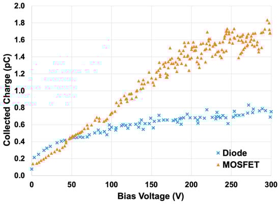 Diode and MOSFET collected charge at reverse biases of 0 to 300 V, based on the data from [25].