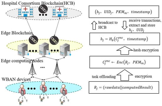 A large number of encryption algorithms have been applied to ensure the security of user information in WBANs. The blockchain encryption scheme proposed in recent years has gradually been applied to encrypt user information in WBANs. Ren et al. [24] designed a task-offloading strategy for a centralized low latency, secure, and reliable decision method (LSRDM-EH) with strong emergency handling capabilities and a dual-layer multi-dimensional comprehensive security strategy based on blockchain. In [25], a task-offloading strategy based on blockchain and trust awareness (BBTAS), through which task-offloading requests are published as blockchain transactions and automatically and securely executed by smart contracts (SCs). A blockchain based on a private WBAN platform to assist wearable IoT devices in healthcare services was proposed in [26]. The platform implements a distributed architecture using WBAN to introduce decentralized configuration and ensure privacy between wearable IoT devices in the network. Son et al. [27] developed a secure authentication protocol for cloud-assisted remote medical information systems using blockchain for access control. This protocol adopted encryption based on ciphertext policy attributes (CP-ABE) to establish access control for health data stored in cloud servers and apply blockchain to ensure data integrity.