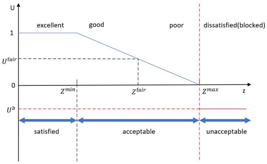 We can map the delay of each user to the utility score according to Equation (18). We determined the minimum tolerance cost for users and the maximum tolerance cost for users by measuring the average opinion score. We also defined a tolerance midpoint from which users feel a significant decrease in service experience.