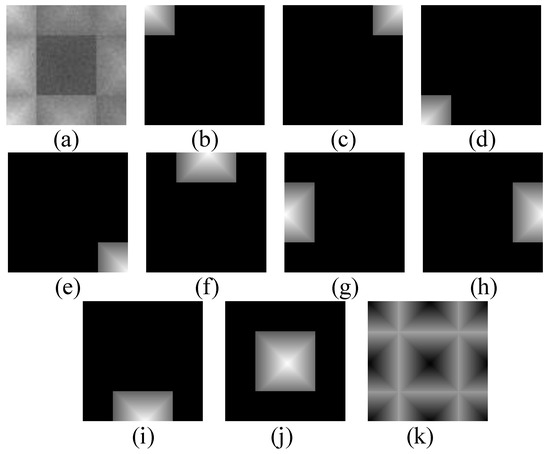 Abundance maps of Simu-10 data. (a) Synthetic image; (b–k) Abundance of the ten endmembers.