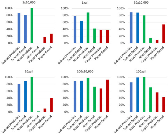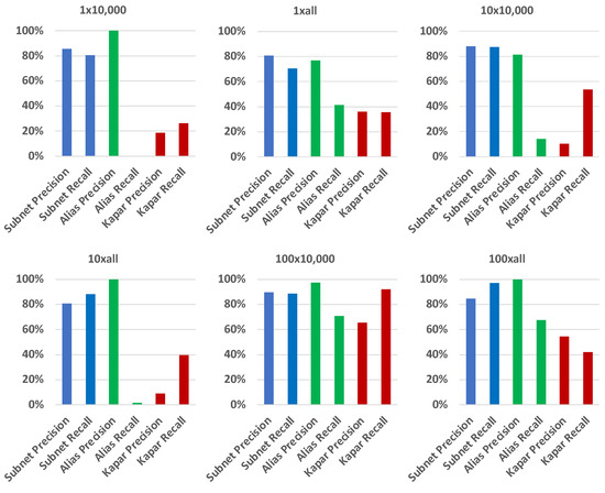 - Albakour, T.; Gasser, O.; Smaragdakis, G. Pushing Alias Resolution to the Limit. In Proceedings of the 2023 ACM on Internet Measurement Conference, New York, NY, USA, 24–26 October 2023; pp. 584–590. [Google Scholar]