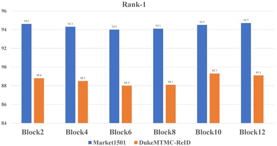 Evaluate the Rank-1 of effective placement of Block on two datasets.