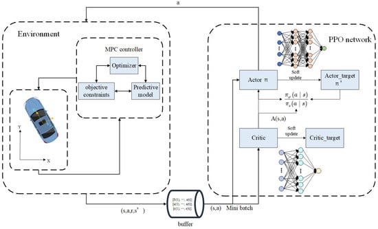 The framework of PPO-MPC is shown in Figure 3, which includes the environment and PPO network. The state given in the environment is input into the PPO network for learning and training. The state quantity is scored through the critic network, and then the appropriate action is selected.