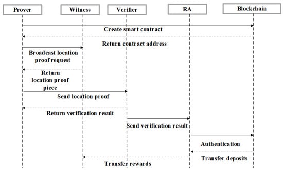 Existing Problems. In the PoL scheme proposed by Yang et al. [], we observe that location proofs are only validated after the commitment keys of the prover and relevant witnesses expire. This characteristic is not suitable for instant location verification. In addition, the requirement for the PPLP protocol to run between the witnesses and the prover leads to increased storage and computational overhead, potentially making it unsuitable for resource-constrained devices. Finally, the scheme does not consider the motivation for witnesses to participate in the PoL scheme; thus, witnesses might refuse to assist the prover in generating location proofs.