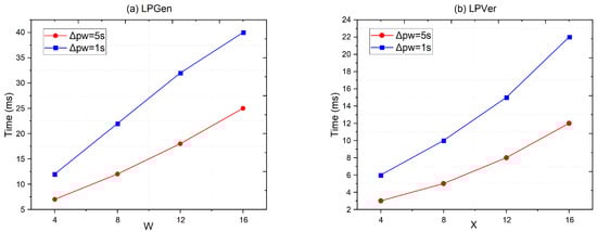 Figure 12a illustrates the linear growth of the location proof generation time with the number of witnesses X and that it varies inversely with the password generation interval . However, even when setting s, the overall proof generation overhead is only a few tens of milliseconds. This feature enables our PPPoL scheme to support instant location verification.