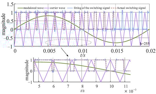 When h = 255, the Sa(t) function fitting, as well as the comparison plot of the actual switching signal, is shown in Figure 4, where the carrier ratio is 15 and the modulation regime is 0.8.