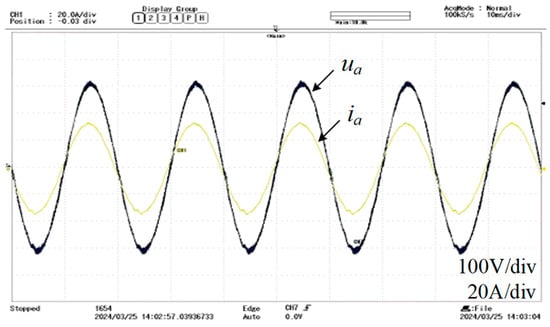 The a-phase voltage and current waveform measured during steady-state operation are shown in Figure 12. It can be seen that the voltage and current remain almost in the same phase, and the power factor is close to 1, ensuring the efficient operation of the system.