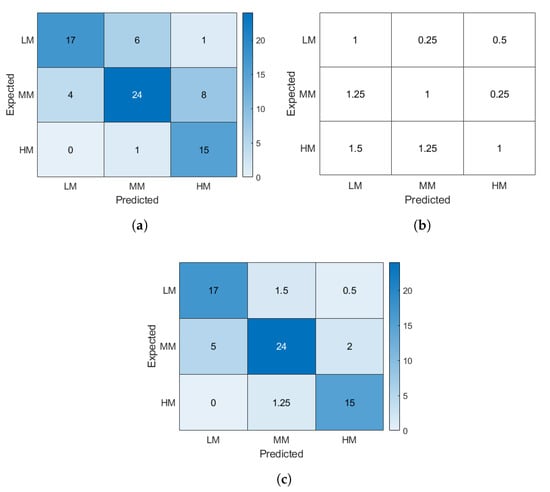 To this end, a medical team elaborated upon the test dataset by exploiting literature and in-the-field experience to cover a wider range of actual patient characterizations and clinical presentations, and hence, risk and desired monitoring classes. Each test case comprised data about the patient history, clinical background, vital signs, and clinical indicators, along with the expected decision of the ES. This decision is the one an experienced physician would have made when faced with the same clinical case. All test cases included the required data but vary in the richness of the optional ones. Overall, the validation dataset consisted of 76 cases, which is in line with other examples in the literature [], distributed as follows: 24 cases for LM, 36 for MM, and 16 for HM.