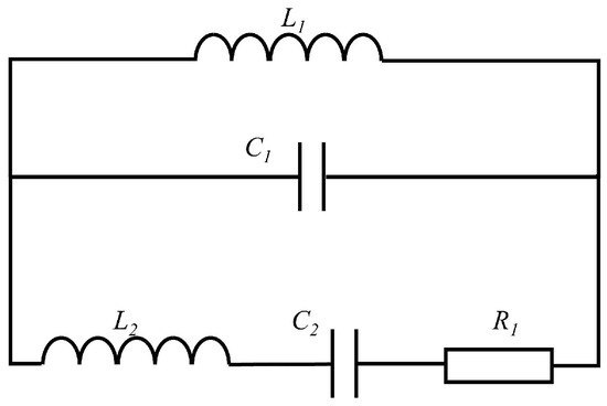 Bus-to-ground capacitance has an important influence on the distribution of transient components, which cannot be ignored in EHV transmission lines. Generally, the capacitance to ground installed on EHV alternating current (AC) transmission lines ranges from 2000 pF to 0.1 μF. The greater the capacitance between bus and ground, the greater the transmission attenuation of signal, and the transmission and reflection ability of signals enhances with the increase in frequency. The trap and the bus capacitance to ground together constitute the “line boundary”. The trap consists of a main coil and a tuning device, and the model is shown in Figure 1 [18]. The trap is connected in series between the bus and the transmission line protection installation, which is an important equipment for high frequency protection and communication signal transmission. Inductor is the main coil for carrying power frequency current. Inductor , capacitor , capacitor , and resistance together form a tuning device, which forms a resonant circuit with the main coil, and presents high impedance to high-frequency signals in a certain frequency band, thus preventing high-frequency signals from being transmitted in unnecessary directions. In this paper, the parameters of the trap designed in reference [18] are used to design the transmission system. According to this document, the blocking frequency band of the wave blocker is [62.3 kHz, 384.7 kHz], and the transient signal in this frequency band is seriously attenuated. In order to make the high-frequency signals generated inside and outside the area not affect each other, traps should be installed at both ends of the adjacent buses where the protected lines are installed, as shown in Figure 2 [19].