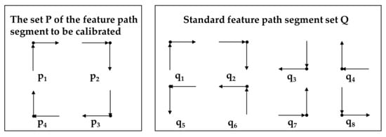 A schematic diagram of the set of feature path segments to be calibrated and standard feature path segments.