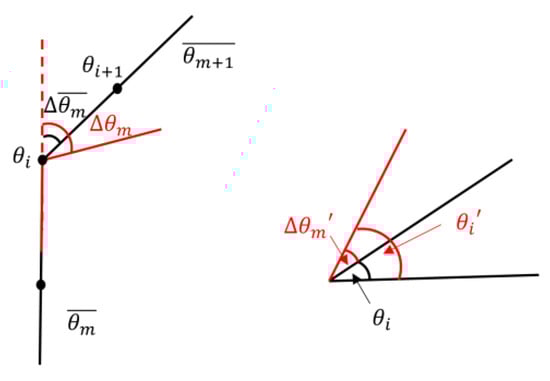 For the horizontal path divided by the turning point, the difference between the average yaw angle of the previous horizontal path and the current horizontal path is calculated. And the yaw angle of the current horizontal path is calibrated by the terrain corner angle , corresponding to the turning point. The calculation formula is