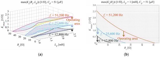 Operating area of PBC (a) for different switching frequencies and filter induction LF and (b) for the assigned output filter parameters.