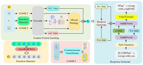 - Li, Q.; Li, P.; Ren, Z.; Chen, Z. Knowledge bridging for empathetic dialogue generation. In Proceedings of the AAAI Conference on Artificial Intelligence, Virtual Event, 22 February–1 March 2022; AAAI Press: Washington, DC, USA, 2022; Volume 36, pp. 10993–11001. [Google Scholar]