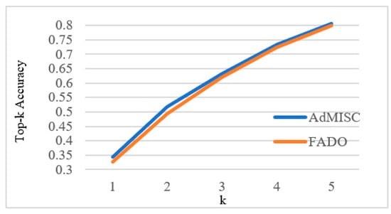 Top-k prediction. As shown in Figure 5, a comparison between AdMISC and the FADO model was conducted on Top-k prediction accuracy. AdMISC consistently outperforms the FADO model across all Top-k accuracy metrics, indicating more accurate label classification.