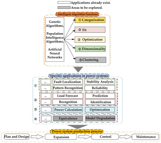 Figure 1 shows the applications of an intelligent algorithm used in the power system. At present, artificial intelligence algorithms have been applied to many fields in the power system, and were helpful in improving the reliability of the power system and the economy of operation in Reference [27]. Many existing researchers have been devoted to fault location methods based on intelligent algorithms.