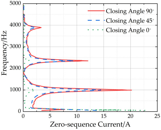 Under the same frequency, the admittance satisfies a corresponding relationship in Reference [34]. When we research these factors’ influences on the zero-sequence current spectrum, we can examine these factors by the frequency characteristics of the zero-sequence admittance.