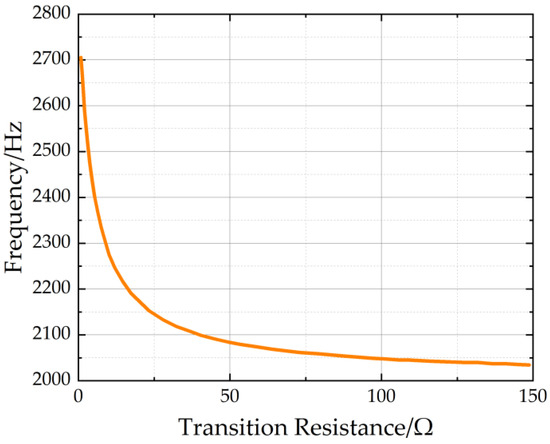 Similarly, we can obtain the curve between the centroid frequency and transient resistance, as shown in Figure 10. It can be observed that, as the transient resistance increased, the centroid frequency gradually decreased.
