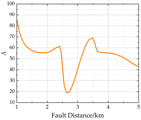 At a fault distance of 1.5 km, the curve provided location results of 1.53 km and 2.8 km. To enhance accuracy, the λ curve was employed for distance measurement, as illustrated in Figure 18.