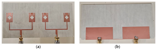 A 2 × 1 antenna array: (a) front; (b) back.