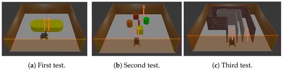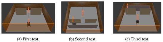 The second experiment consisted of three tests executed in the environments depicted in Figure 9.
