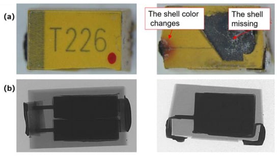 (a) Macroscopic defects on package; (b) X-ray morphology.