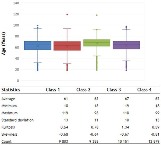 As the disease progresses to a more pronounced stage, the age distribution widens, reflecting considerable diversity. This is observed in intermediate (Class 2), moderate (Class 3), and advanced (Class 4) patients, while continuing to occur in young patients, suggesting that PD with non-motor symptoms is not limited to a particular age group. This analysis reinforces the complexity of PD and the variability in the manifestations of non-motor symptoms in the different stages of the disease.