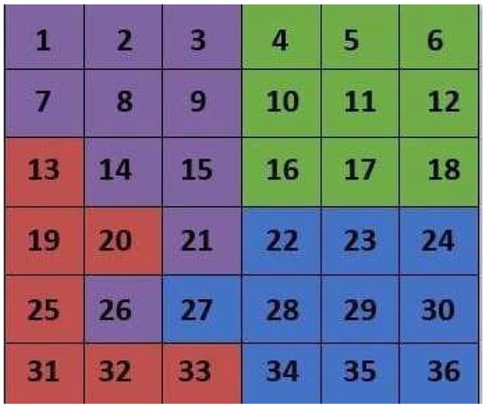 The SOM method was chosen for this work, as previously mentioned, with a map size of 6 × 6, totaling 36 neurons. This choice sought to balance the representativeness of the model and avoid overfitting. The 6 × 6 dimension was chosen to allow a clear visual representation, avoiding redundancy and maintaining interpretability. This decision met the scientific need for effective representation, considering the complexity of the data and the ease of visual interpretation [,].