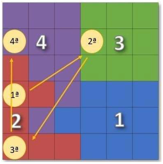 When the K-means algorithm was applied to the map, four classes were obtained, which were numbered according to the order of severity, when each symptom was analyzed individually. They were also differentiated by colors, chosen at random, to better identify each class.