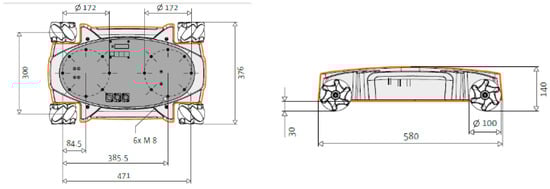 Geometric dimensions (in [mm]) of the mobile platform KUKA youBot.