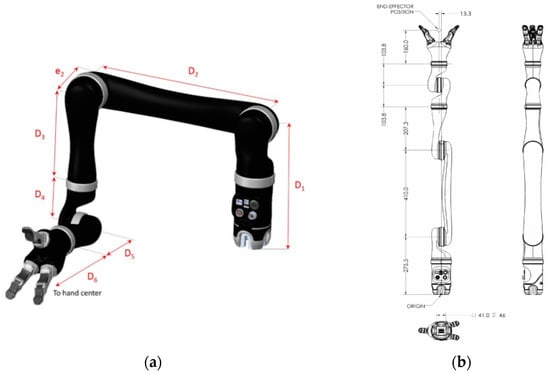 Notations (a) and dimensions (b) of Jaco Gen 2 manipulator.