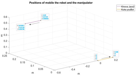 The displacement between the positions of the end-effector of the Kinova Jaco Gen 2 manipulator and the KUKA youBot mobile platform during the experiment is presented in Figure 10.