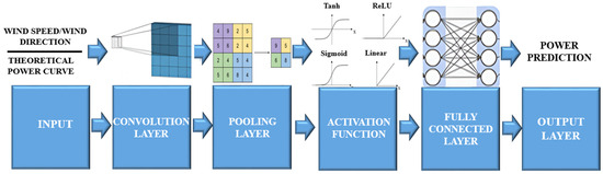 - Fully Connected Layers: Following the convolutional and pooling layers, fully connected layers integrate extracted spatial features to generate final model outputs. These layers use the information obtained from the convolutional operations to discern relationships between the input and output, that is, the wind dynamics and turbine performance in our case.