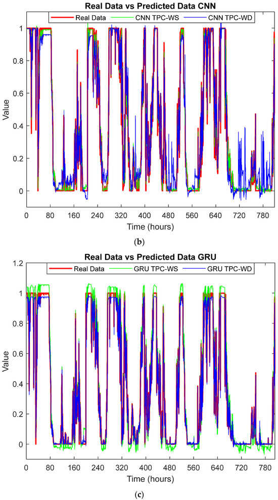 A series of reflections can be deduced from these results. On the one hand, the technical efficiency of each predictive model is evident, but the results also provide ideas about their practical usefulness. Comparative error analysis suggests that, while GRU models may be beneficial for datasets without complex dependencies, CNN and transformer models are better suited for more complex data sets with more intricate patterns. Exploring these error patterns provides a path for future research which aims to further refine these models, possibly leading to the development of hybrid approaches that leverage the different strengths of each technique to achieve better performance.