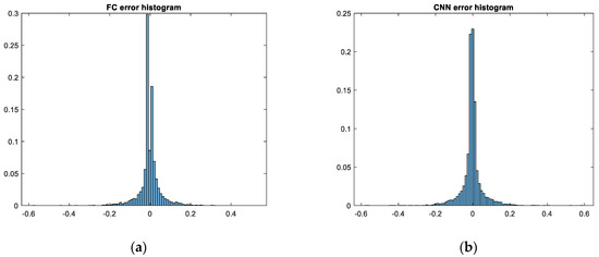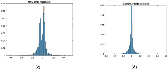 Error histogram of the different techniques: (a) FC model. (b) CNN model. (c) GRU model. (d) Transformer model.
