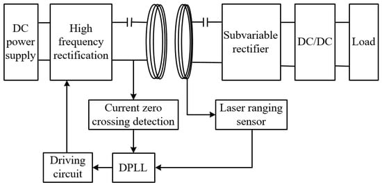 Figure 4 below illustrates the frequency tracking control diagram for WPT. The frequency tracking adjustment system mainly consists of laser ranging sensors, current sampling circuits, zero-crossing comparators, DPLL (digital phase-locked loop), and driver circuits. The specific implementation process is as described in the following.