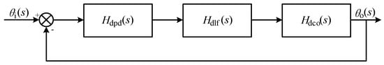 In the diagram above, denotes the phase of the input signal , while represents the phase of the output signal . Additionally, , , and correspond to the transfer functions of the phase detector, loop filter, and voltage-controlled oscillator (VCO), respectively.