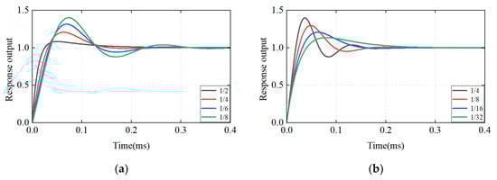 Different parameter settings yield distinct step response curves for the system. (a) , changes; (b) , changes.