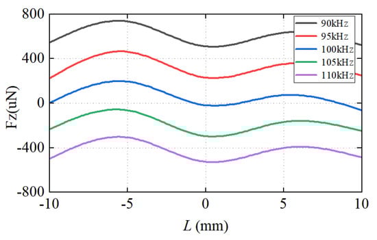 In Figure 12, when the receiving coil undergoes lateral displacement, the electromagnetic-force it experiences remains at the level. As the eccentricity approaches the system’s switching frequency, the electromagnetic-force caused by eccentricity becomes smaller.