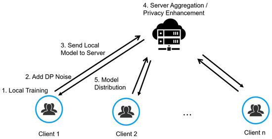 Moreover, the integration of differential privacy within federated learning frameworks, as proposed by [27,28,29], has set a new standard for privacy-preserving machine learning. By adding noise to the model updates in a controlled mannver, differential privacy ensures that the trained model does not reveal sensitive information about the data on any specific client’s device [30,31].