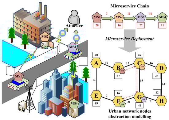 The Internet of Vehicles (IoV) is a very promising technology [1], and in recent years, with the rapid development of the Internet and the IoV, the number of vehicle users has been growing, and the generation and processing of large amounts of data have become common phenomena [2]. Meanwhile, as the cost of a network channel’s bandwidth and computing resources decreases, internet applications are becoming larger and larger, with too much coupling existing between functions and features for system changes and later maintenance [3,4]. Unlike traditional networks, bandwidth and computing resources are generally scarce in IoV environments, and the use of individual applications may face quality of service problems such as high latency and network congestion. Microservices are one solution to this problem because they have the feature of splitting a large application into multiple small and independent services [5,6], each running in an independent process. Microservices communicate with other services through open service interfaces to jointly fulfill the functions of the application [7]. Several studies have shown that microservice technology can be ported to the IoV by combining containerized microservice technology with the Kubernetes orchestration tool [8,9,10], as well as by designing orchestration algorithms to manage the whole process. By applying microservice technology within the IoV, the performance in terms of network flexibility and scalability can be improved.