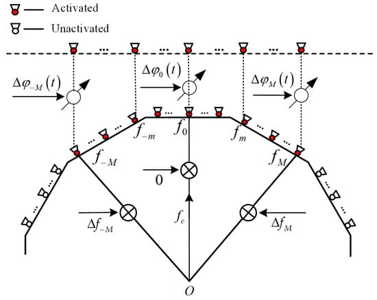 The carrier frequency is . Using of the reference array element as the reference point, set . The frequency of the transmitted signal of the m-th array element is designed as shown below: