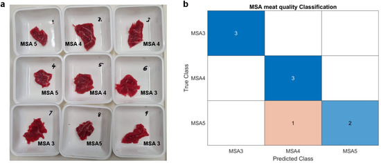 Conventional methods of evaluating meat quality and safety involve rigorous testing of various characteristics of a carcass, performed visually by a certified grader. This grader assigns scores to each characteristic, which are then aggregated with other features of each sample to assign an MSA (Meat Standards Australia) grade to the meat before its distribution. This process aims to better inform consumers and distributors. Another widely recognised procedure in the meat quality assessment industry is the Warner–Bratzler shear force (WBSF) method. This method involves extensive and thorough sample preparation [4,5,6], allowing for a controlled environment in which the meat’s toughness and tenderness can be precisely gauged. It does so by measuring the maximum shear force required to cut through specifically portioned sample sizes of meat that have been cooked and cooled [7]. However, due to the relatively subjective and time-consuming nature of the aforementioned assessment techniques, various methods have been explored that could provide a more reliable, objective, and efficient evaluation of meat quality and safety.