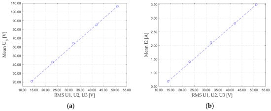 As can be seen in Figure 8, the higher the voltage source RMS values, the higher the mean voltage Ub on the DC link that can be observed. However, the mean load-side current I2 also increases the voltage increase.